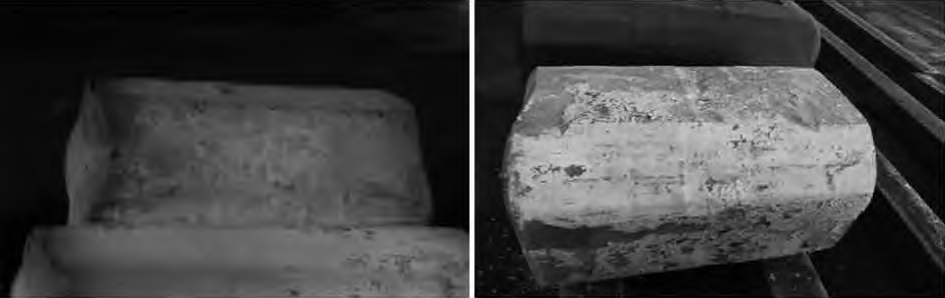 (g)石棉包覆锻后热料 (h)石棉包覆锻后冷料
