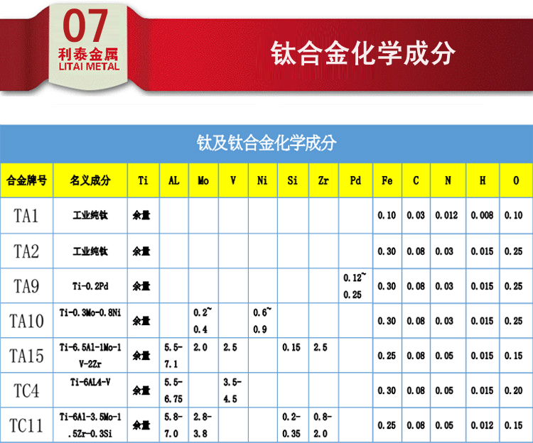 工业上常用的工业纯钛是TA2,因其耐蚀性能和综合力学性能适中。对耐磨和强度要求较高时可选用TA3。对要求较好的成形性能时可选用TA1。